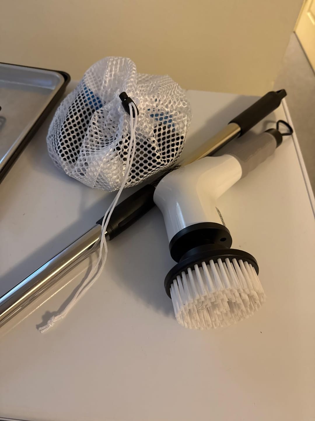 This scrubber is a total game changer. Honestly, I love that it came with so many attachments I've used it on my tub, my tiled kitchen floor, and even to scrub my outdoor patio furniture. The extender pole is super sturdy, and seeing the battery percentage right there on the handle is surprisingly helpful; I never get caught mid-job. It was really easy to figure out, and swapping out the brush heads takes zero effort. Definitely worth the price just for the time it saves me.